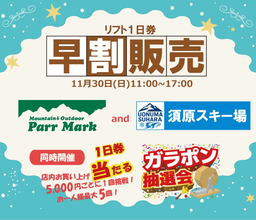 【アウトドアショップ パーマーク】最終早割販売会のご案内【11/30】