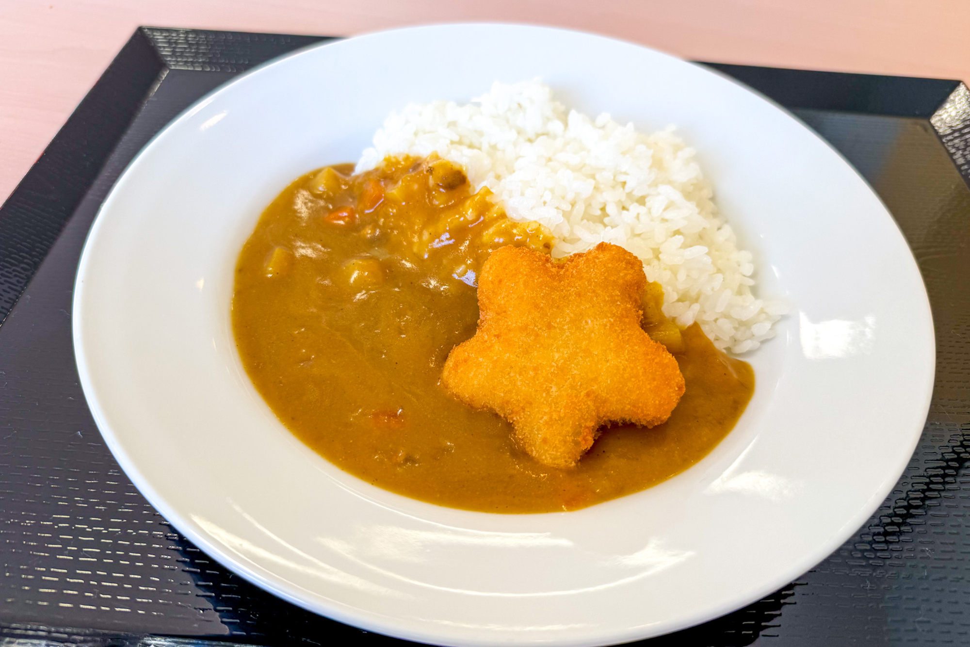 お子様星カレー【幼児向け】 22種の野菜と果実が溶け込んだルーに人気の星コロッケを乗せました。小さなお子様連れでも、安心して山頂でお食事できます |